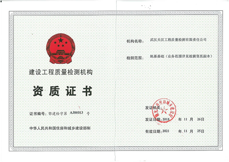 建設(shè)工程質(zhì)量檢測(cè)機(jī)構(gòu)資質(zhì)證書