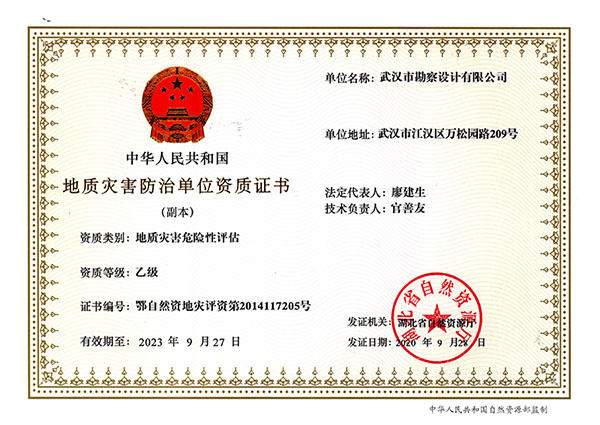 地質(zhì)災(zāi)害治理工程設(shè)計(jì)乙級(jí)資質(zhì)