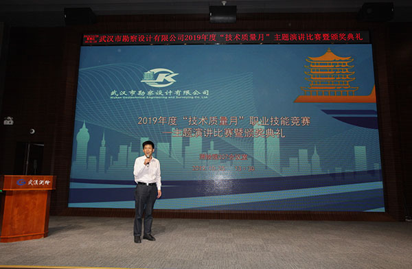 本屆競賽是一場跨專業(yè)、多工種的綜合性技能競賽,公司共有147名生產(chǎn)部門的專業(yè)技術(shù)人員參加了比賽,比賽分兩個階段,第一階段為職業(yè)技能競賽,分別設(shè)巖土工程(含設(shè)計、檢測、地質(zhì)環(huán)境)、基礎(chǔ)施工、測繪工程(含監(jiān)測)、土工試驗、不動產(chǎn)咨詢5類競賽項目,主要以專業(yè)技術(shù)知識考試為主,其中測繪工程和土工試驗兩個專業(yè)還進(jìn)行了實操比賽,第二階段為主題演講比賽。