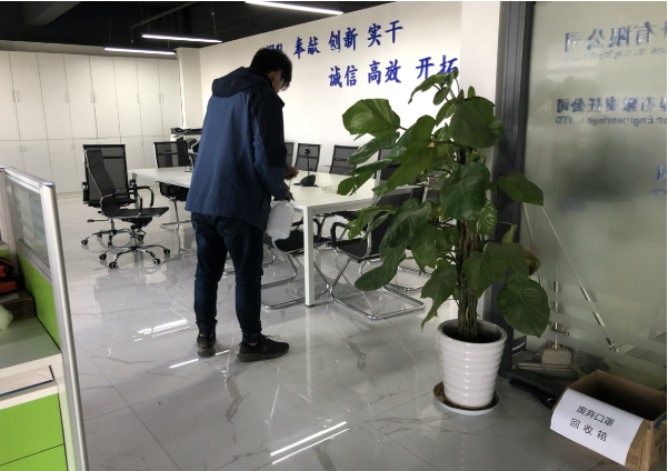 臨空分公司組織人員在復工前一天對辦公室、宿舍、生產車輛等進行了徹底消殺,并為員工準備了口罩、酒精、消毒水、防護服等防疫物品。為了保證員工的個人生命安全,做到每人每日測量體溫并做好記錄,嚴格按照要求佩戴口罩;免洗消毒液隨身攜帶隨時隨地消毒;訂購分餐盒飯,一人一桌單獨用餐;按值班表每日專人對工作區(qū)域進行消毒。