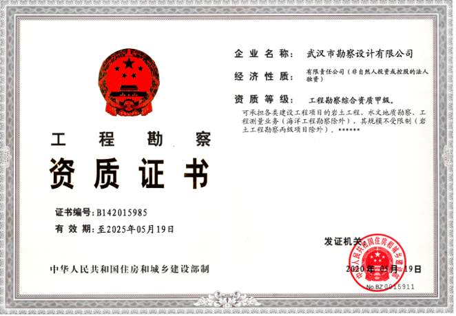 2020年5月19日,我司工程勘察綜合資質(zhì)甲級延期申報材料順利通過國家住房和城鄉(xiāng)建設(shè)部的最終審核,獲準延期,取得了國家住建部頒發(fā)的工程勘察綜合資質(zhì)甲級新證,為我司今后能夠順利承接各類建設(shè)工程項目的巖土工程、水文地質(zhì)勘察、工程測量業(yè)務(wù)等提供了有力的保障。