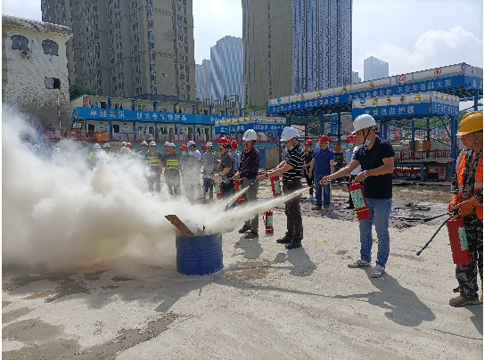 此次演練活動的主要內(nèi)容是模擬項目生活區(qū)發(fā)生火災(zāi),檢驗發(fā)生火災(zāi)后,項目應(yīng)急預案啟動、響應(yīng)、救援、處置等情況;演練現(xiàn)場參演人員從火情報告、疏散、救援等行動迅速有序。最后的滅火實戰(zhàn)演練,先由項目管理人員講解滅火器的檢查、使用方法,全體演練人員進行滅火實操演練。