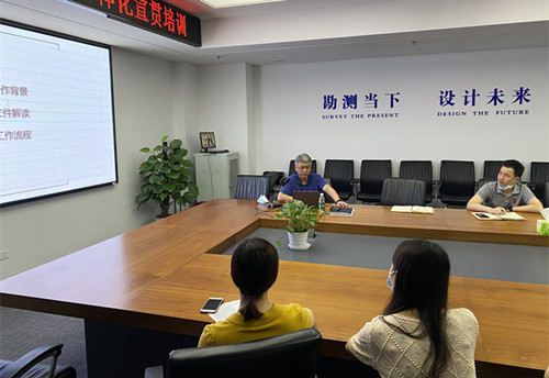 培訓(xùn)現(xiàn)場,市測繪研究院王主任結(jié)合“放管服”改革、“優(yōu)化營商環(huán)境”改革、“四辦”改革、“審批服務(wù)大集中”改革四個方面對“權(quán)籍調(diào)查及測繪一體化”知識進行了系統(tǒng)全面的講解,進一步鞏固了全體員工的專業(yè)理論知識,同時也讓大家對相關(guān)業(yè)務(wù)的辦理流程有了更加清晰的認識。