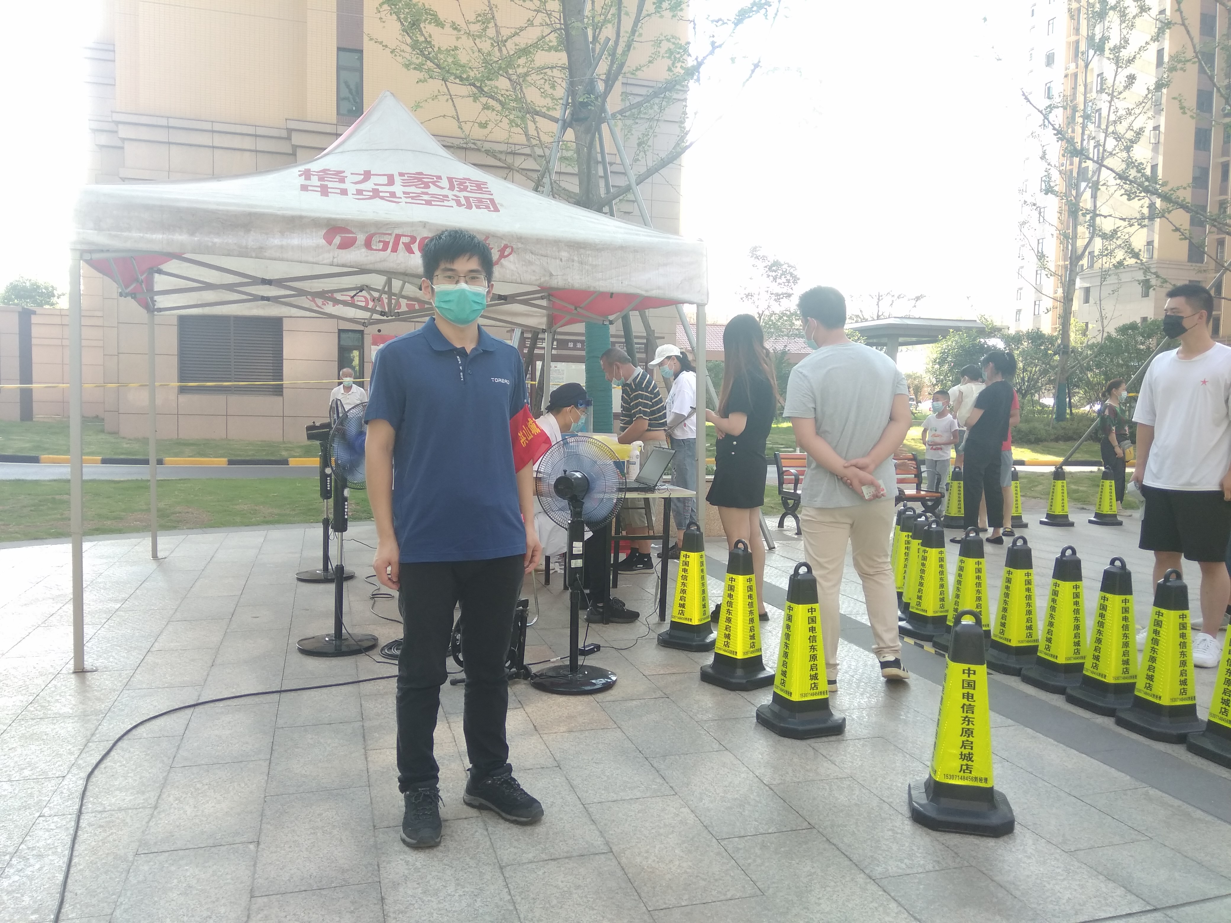 8月4日,公司黨員謝朋、蔣屹早上6:30便已到達社區(qū)統(tǒng)一安排的崗位上開始工作。據(jù)了解,勝利社區(qū)共有1998戶住戶,為避免人員密集,社區(qū)在全社區(qū)設(shè)置了3個核酸檢測點,分時分批組織居民檢測。“請大家戴好口罩,保持好安全距離!”“請有序排隊等待檢測,如有身體不適,請盡快聯(lián)系志愿者!”在炎炎夏日的高溫下,黨員們耐心地向社區(qū)居民告知注意事項,維護好現(xiàn)場秩序,組織登記、測量體溫,每時段檢測完成后及時疏散,確保核酸檢測安全、有序進行。通過一天的努力,勝利社區(qū)3個核酸檢測點分別檢測442人、479人、388人,共計1309人。