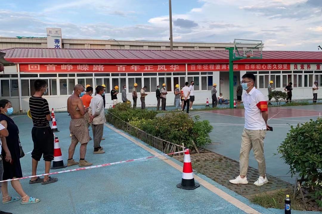 8月5日晚上18:00,公司黨員杜徐峰、宋友建、鄭暉、梅冬、余斌、陳澤風、李子紅在社區(qū)工作調(diào)度下,來到黃家湖污水廠核酸檢測點,協(xié)助做好核酸檢測工作。面對炎熱夏夜和蚊蟲叮咬,黨員們依然堅守在檢測現(xiàn)場,熱情耐心地為該項目現(xiàn)場共計200余名工人,進行信息登記、掃碼、維持現(xiàn)場秩序、講解檢測流程等,工作直至凌晨12點才結(jié)束。“我們處于與病毒賽跑的關(guān)鍵時刻,作為黨員,我們義不容辭要為這場戰(zhàn)斗添油助力!”黨員們紛紛表示道。