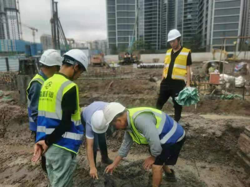 面對該項目地層區(qū)域差異性大,協(xié)調(diào)溝通任務(wù)重,施工條件艱苦,疫情防控形勢嚴(yán)峻等不利因素,昌廈公司周密部署,迎難而上,集合施工人才,組建高效協(xié)作施工團隊,保障項目順利推進。在項目實施過程中,樁基礎(chǔ)工程采用泥漿護壁鉆孔灌注樁樁端樁側(cè)復(fù)合后注漿及預(yù)應(yīng)力管樁的施工工藝;基坑支護工程的結(jié)構(gòu)采取“樁-撐”的形式;止水帷幕及土體加固采用三軸攪拌樁支護形式。項目團隊努力克服8月份疫情嚴(yán)峻形勢及高溫天氣的影響,落實疫情防控措施和安全生產(chǎn)管理工作,定期組織技術(shù)交流與培訓(xùn),積極與各方單位協(xié)調(diào),高效安全進行多線作業(yè),確保高質(zhì)量完成工期任務(wù)。