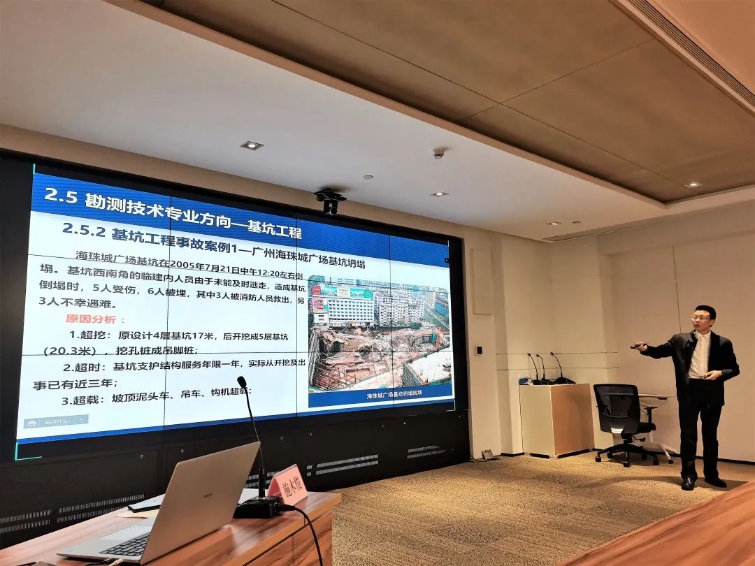 授課進(jìn)入尾聲時(shí),施木俊重點(diǎn)推介了公司在行業(yè)發(fā)展,企業(yè)管理上的優(yōu)勢(shì):在勘測(cè)與巖土工程專業(yè)領(lǐng)域,武勘公司能為工程建設(shè)項(xiàng)目的策劃階段提供最優(yōu)解,能精準(zhǔn)把控工程全過程風(fēng)險(xiǎn),實(shí)現(xiàn)項(xiàng)目風(fēng)險(xiǎn)、經(jīng)濟(jì)與時(shí)間相平衡;已積累的分布在武漢各地?cái)?shù)十萬的鉆孔資料和已建設(shè)的數(shù)據(jù)管理平臺(tái),為項(xiàng)目開發(fā)初期高效準(zhǔn)確進(jìn)行成本、工期預(yù)估提供了重要基礎(chǔ)資源;現(xiàn)有的智慧監(jiān)測(cè)平臺(tái)及自動(dòng)運(yùn)行的測(cè)量機(jī)器人讓項(xiàng)目建設(shè)與運(yùn)行維護(hù)一切盡在掌握;管理信息化更是成為了打破深井,為企業(yè)發(fā)展賦能的重要手段。