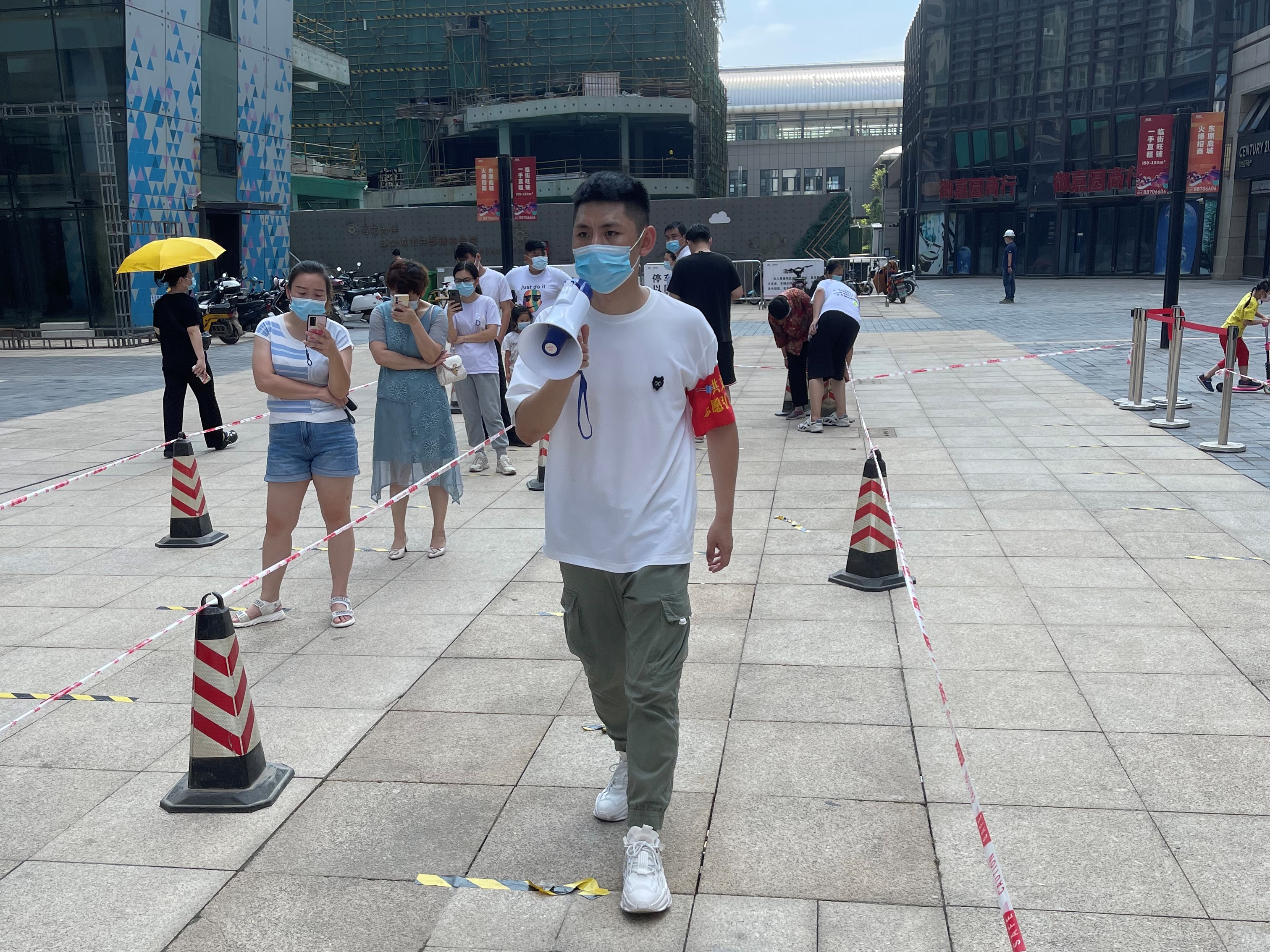 “請大家戴好口罩,保持好安全距離!”“請有序排隊(duì)等待檢測,如有身體不適,請盡快聯(lián)系志愿者!”在炎炎夏日的高溫下,黨員們耐心地向社區(qū)居民告知注意事項(xiàng),維護(hù)好現(xiàn)場秩序,組織登記、測量體溫,每時(shí)段檢測完成后及時(shí)疏散,確保核酸檢測安全、有序進(jìn)行。經(jīng)過3天的努力,下沉黨員們協(xié)助勝利社區(qū)順利、高效完成了全員核酸檢測。