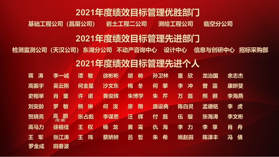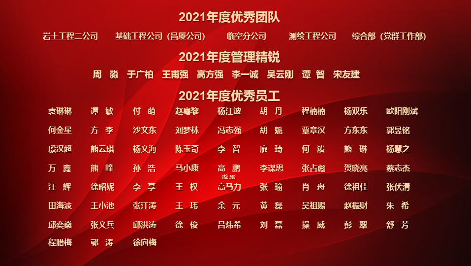 為表彰先進、樹立榜樣,進一步激發(fā)干部員工勇當(dāng)先鋒、勇爭佳績,公司領(lǐng)導(dǎo)在會上宣讀了年度各類表彰。