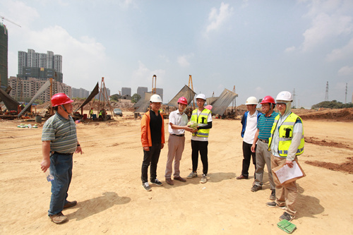 7月24日,公司董事長廖建生、副總經理安永強、副總經理兼總工程師官善友、副總經理蔣濤率領綜合部、技術質量安全部(體系辦)、東湖分公司、新區(qū)分公司、基礎工程公司等部門相關負責人親赴一線,依次巡察了沌口村還建樓工程勘察項目、燎原村K8地塊超前鉆工程勘察項目和星河九州K2地塊基坑施工現場,并送去了防暑降溫物品。每到一處,廖董都詳細詢問工程進展、人員配置及作業(yè)時間安排等情況,強調要切實采取防暑措施,合理安排作業(yè)時間,確保人員安全。廖董鼓勵年輕同志要抓住城市建設大發(fā)展的時代機遇,踏實工作、刻苦研究、勇于創(chuàng)新,爭取更大的進步,同時強調在高溫期間,項目巡察慰問工作要常態(tài)化,確保安全生產“零事故”。