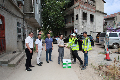 2018年入夏以來,武漢出現持續(xù)40℃以上的高溫天氣,室外地表溫度普遍達到60度以上。高溫酷暑下,我公司分布在全市各區(qū)域的項目部工作人員依然奮戰(zhàn)在項目施工現場的第一線,他們搶抓施工黃金季,揮汗如雨,確保各項工程的安全、優(yōu)質、高效。公司領導高度重視,董事長廖建生親自部署,要求各部門及時安排防暑降溫物資,注重安全生產,同時指示公司領導立即分赴項目現場慰問指導,察看施工作業(yè)情況,解決實際困難。
