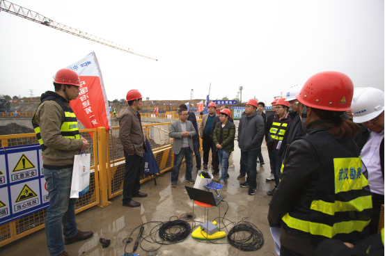 觀摩活動中,現(xiàn)場項目負(fù)責(zé)人黃彪介紹了項目概況以及前期已完成檢測工作后,南京帝壩工程科技有限公司技術(shù)人員現(xiàn)場演示了地連墻聲納滲流檢測的檢測過程,同時南京帝壩總工程師杜國平教授對該方法的原理及應(yīng)用作了詳細(xì)介紹,現(xiàn)場觀摩的技術(shù)人員對此展開了熱烈的交流與討論。