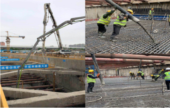 2019年4月26日下午,伴隨著最后一方混凝土振搗密實,漢口國際濱江商務區(qū)地下環(huán)路首塊底板順利澆筑成功。此次底板澆筑成功標志著地下環(huán)路基坑工程順利開挖到底并進入主體結(jié)構(gòu)施工階段。